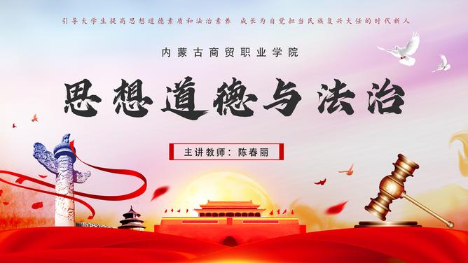 《思想道德与法治》课程是高等学校思想政治理论课程体系的重要组成部分,是一门融思想性、政治性、科学性、理论性、实践性于一体的思想政治理论课程,是对大学生进行思想政治教育的一门公共必修课。课程以社会主义核心价值体系为主线,以理想信念教育为核心,以爱国主义教育为重点,对学生进行人生观、价值观、道德观和法制观教育。